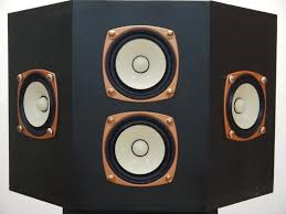 この方式を長岡鉄雄が発表したときのプロトタイプは16Ωの10cmスピーカーを4つ使い、5角形の小型の箱に取り付けたもので、同様のシステムを作ったファンはいっぱいいたことでしょう。ネット検索でもこのような画像が見つかります。左のものがファンの制作された中でもなかなか綺麗なものでしょう。このようなものがプロトタイプで、長岡氏ご自慢のマトリックス・スピーカーMX−1です。驚異のシステム、マトリックス・スピーカーの誕生でした。