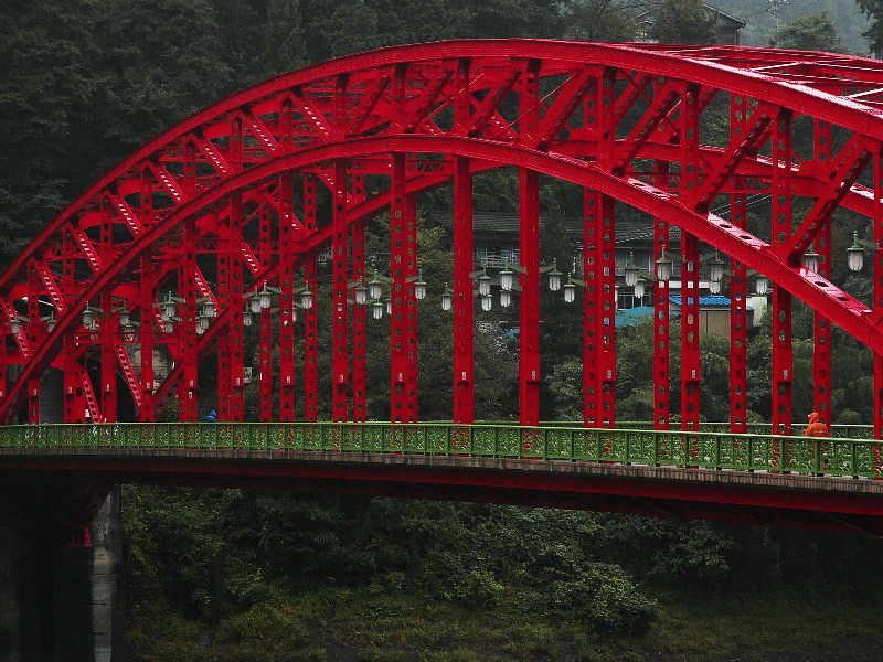 峰谷橋の赤い色に飽きたのか、黄色い橋が新鮮に見えた。